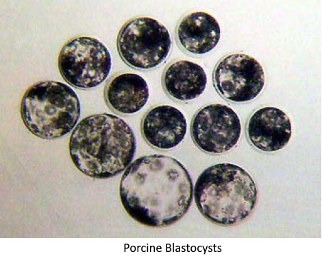 - Click here to see all products for porcine reproductive engineering.Complete Culture Kit for Porcine Embryos _III_in vitro_IIII_ This is a complete culture kit for porcine embryos in vitro containing porcine oocyte/embryo collection medium (POE-CM), basic medium for porcine oocyte maturation (POM), porcine fertilization medium (PFM), defined medium for porcineembryos (PZM-5), defined medium for late stage porcine embryos (PBM), dbcAMP concentrated solution-100X (dbcAMP-100X) and Reproplate. This kit can efficiently produce transferable embryos (blastocysts) under a low oxygen condition (5%O$$2$$$/5%CO$$2$$$/90%N$$2$$$, 39°C) without the coculture of cumulus/granulosa cells. This kit can support to increase the blastomere numbers of blastocysts and the formation of hatched blastocysts., CSR
