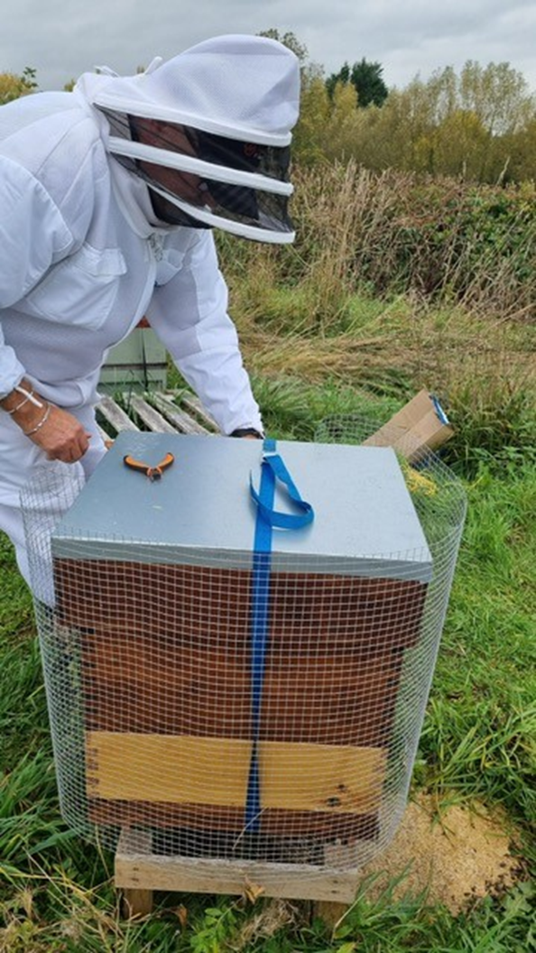 September: We started to put our Bee’s to bed for the winter by adding a mouse guard to the entrance of the hive, an Eke to the top and chicken wire around the hive. I hear you all ask what does all that mean . . .