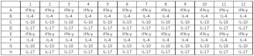 - IFN gamma: 15.6 pg/mlIL4: 7.8 pg/mlIL10: 7.8 pg/mlIL17: 7.8 pg/ml
