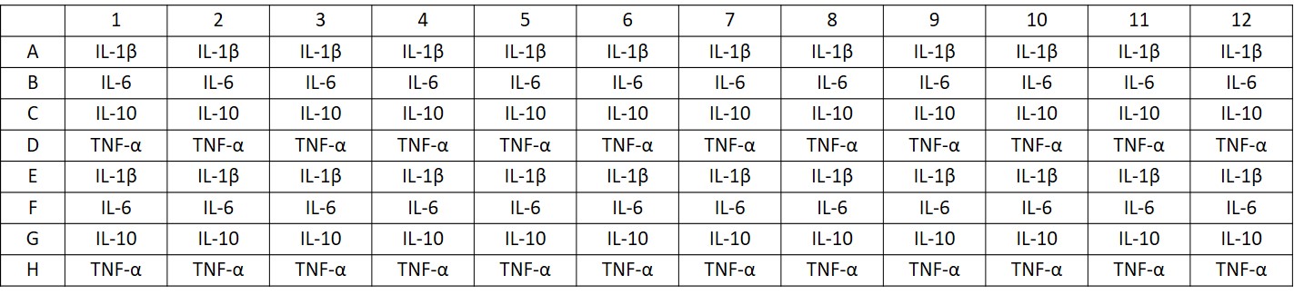 - IL1 beta: 62.5 pg/mlIL6: 125 pg/mlIL10: 62.5 pg/mlTNF alpha: 62.5 pg/ml