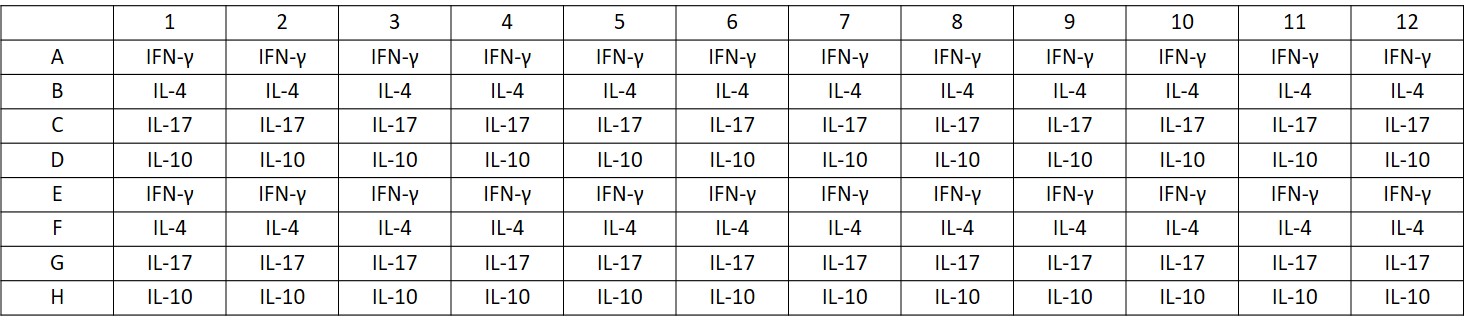 - IFN gamma: 15.6 pg/mlIL4: 7.8 pg/mlIL17: 15.6 pg/mlIL10: 15.6 pg/ml