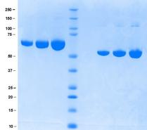 - Albumin constitutes 60% of plasma proteins and exhibits exceptional structural stability due to its 17 disulfide bonds and conserved N-glycosylation. Beyond maintaining 80% of plasma oncotic pressure to prevent vascular fluid leakage, albumin binds and transports hydrophobic ligands-including fatty acids, steroids, thyroid hormones, calcium ions, and over 90% of circulating drugs-via its dynamic binding pockets. Its free Cys34 residue confers antioxidant properties by scavenging reactive oxygen species. Hypoalbuminemia (<3.5 g/dL) arises from hepatic dysfunction (cirrhosis, hepatitis), renal protein loss (nephrotic syndrome), chronic inflammation, or malnutrition. Clinically, it manifests as edema, ascites, and impaired drug efficacy due to reduced ligand binding. Conversely, glycated albumin contributes to diabetic complications by promoting vascular endothelial dysfunction3. Therapeutically, human serum albumin (HSA) has been administered since 1941 for hypovolemia and burns, with modern 5% and 25% solutions managing ARDS and cardiopulmonary bypass. With a 19-day circulatory half-life, albumin stabilizes cell culture media.