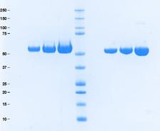 - Lyophilized from 50 mM Tris-HCl, pH 8.0, with 150 mM NaCl.