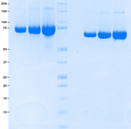 - Apotransferrin, the iron-free form of the glycoprotein transferrin, serves as a critical regulator of systemic iron homeostasis by binding and transporting ferric ions (Fe³⁺) through plasma via a pH-dependent mechanism. It exhibits a structure with two iron-binding sites. Beyond its primary role in iron distribution, apotransferrin modulates immune function by sequestering free iron to limit microbial growth and directly suppresses proinflammatory cytokine production in autoimmune conditions like type 1 diabetes. Clinically, congenital atransferrinemia-caused by TF gene mutations-manifests as severe microcytic anemia coupled with tissue iron overload, requiring lifelong apotransferrin replacement therapy. In biotechnology, ultra-purified apotransferrin (<0.01% iron content, 1.25 ug/mg iron-binding capacity) serves as an essential cell culture supplement, facilitating iron uptake through transferrin receptor-mediated endocytosis while preventing oxidative stress. Recent applications exploit its targeting potential in nanoparticle drug delivery systems for cancer therapeutics and as an antimicrobial adjuvant to enhance antibiotic efficacy against Gram-negative pathogens. The protein's solubility (10 mg/ml in aqueous solutions) and stability under physiological conditions enable its use in diagnostic assays and bioreactor media for biopharmaceutical production.