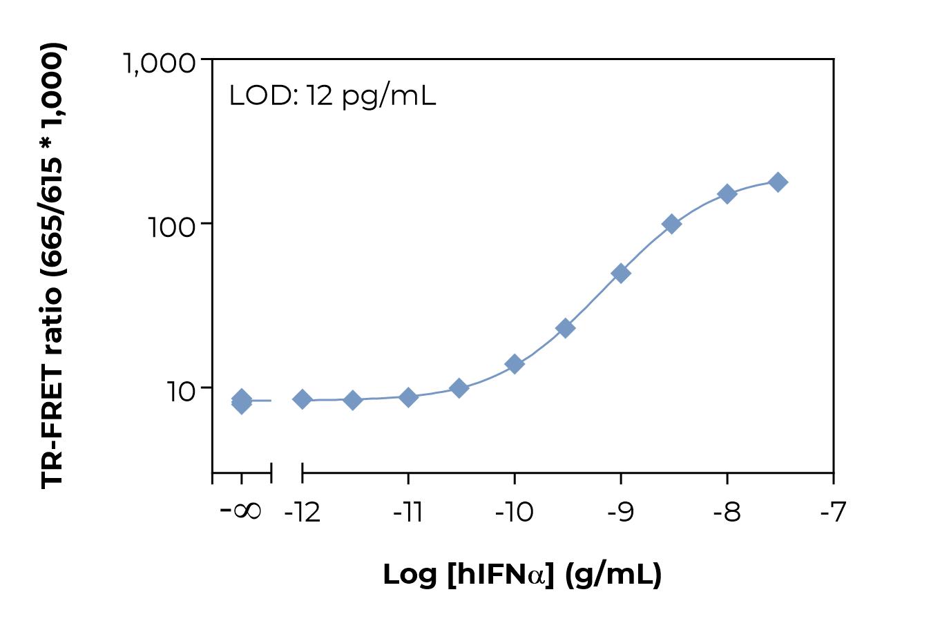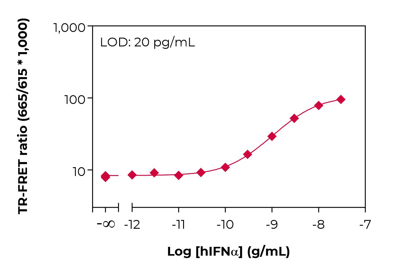 - Sandwich TR-FRET immunoassay for quantitative detection of human Interferon-alpha (hIFNα; IFNA; IFNA2b) in cell culture supernatants. The kit does not include a recombinant human IFNα standard; which must be purchased separately from R&D Systems® (catalogue number 11013-IF).
