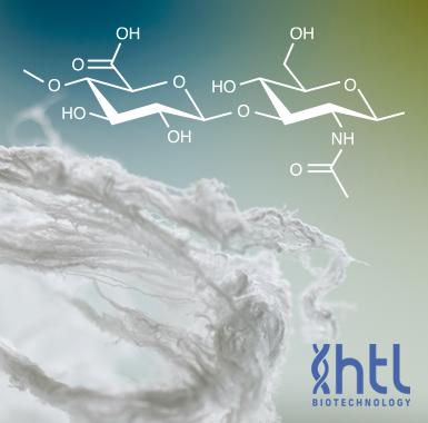 - Sodium Hyaluronate is the sodium salt of hyaluronic acid (HA), also known as hyaluronan, a glycosaminoglycan consisting of D-glucuronic acid and N-acetyl-D-glucosamine disaccharide units. HA is one of several glycosaminoglycan components of the extracellular matrix of connective tissue. HA is a naturally occurring biopolymer involved in numerous biological processes including tissue hydration and structural scaffolding. HA is increasingly used as a reagent and investigated in medical, pharmaceutical and bioengineering applications. Its use as a reagent includes hydrogels for use in aesthetics, ophthalmology, rheumatology, urology, wound healing, and 3D bioprinting. \n \nOur medical grade Sodium Hyaluronate is produced by HTL by fermentation of a Streptococcus equi strain (Group C of the Lancefield Classification / Non GMO / Without any material from animal origin). HTL's proprietary process allows the production of Sodium Hyaluronate fiber with an exceptionally low level of impurities. HTL Sodium Hyaluronate raw material is a medical grade pharmaceutical product manufactured under cGMP conditions and is covered by a Certificate of Suitability of Monographs if the European Pharmacopoeia (CEP) and Drug Master File (DMF). \nHTL Sodium Hyaluronate is aliquoted and distributed by Echelon for research use only. \n \nAbout HTL: HTL is the world leader in the production of pharmaceutical grade Sodium Hyaluronate by fermentation. www.htlbiotech.com \n \nBulk discounts available, please email echelon@echelon-inc.com for information. \n \n \n \nReferences \n1) M.A. Serban, A. Skardal (2018) "Hyaluronan chemistries for three-dimensional matrix applications" Matrix Biology, 78-79, 337-3454. doi: 10.1016/j.matbio.2018.02.010. \n2) C.B. Highley, G.D. Prestwich GD, Burdick JA. (2016) "Recent advances in hyaluronic acid hydrogels for biomedical applications." Curr Opin Biotechnol. 40, 35-40. doi: 10.1016/j.copbio.2016.02.008. \n3) J.A. Burdick, G.D. Prestwich (2011) "Hyaluronic acid hydrogels for biomedical applications." Adv Mater. 23, H41-56. doi: 10.1002/adma.201003963. \n4) A. Dodero, R. Williams, et al. (2019) "A micro-rheological and rheological study of biopolymers solutions: Hyaluronic acid" Carbohydrate Polymers, 203, 349-355, doi:10.1016/j.carbpol.2018.09.072. \n5) P.A. Simmons, J.G. Vehige (2017) "Investigating the potential benefits of a new artificial tear formulation combining two polymers." Clin Ophthalmol. 11, 1637-1642. doi:10.2147/OPTH.S135550. \n \n \n \nDocuments \nTechnical Data Sheet, Echelon