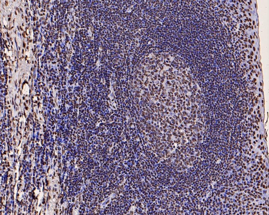 - Jurkat cell lysates, Hela, human lung carcinoma tissue, human tonsil tissue, human kidney tissue, ra