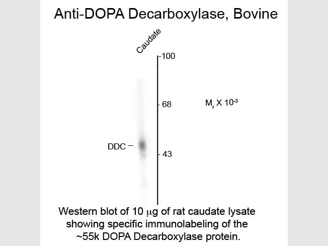 - Anti-DOPA Decarboxylase Antibody was produced in rabbit by repeated immunizations with purified from inclusion bodies and SDS denatured recombinant bovine aromatic DOPA decarboxylase expressed in E. coli.