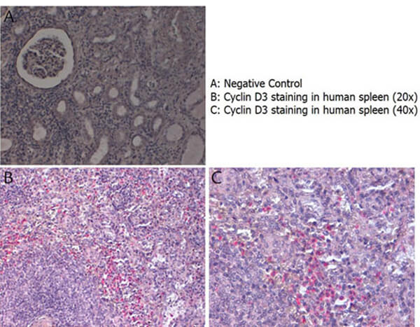 - This affinity purified antibody was prepared from whole rabbit serum produced by repeated immunizations with a synthetic peptide corresponding to the C-terminal domain of mouse Cyclin D3 protein.