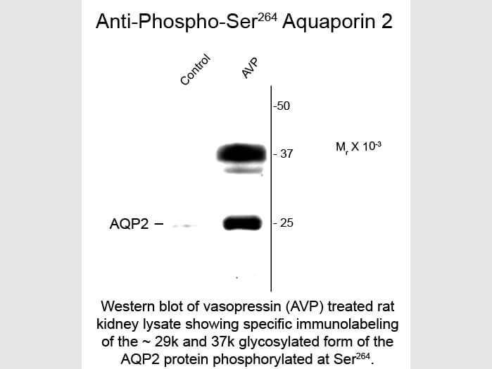 - Anti-Aquaporin 2 pS264 Antibody was produced by repeated immunizations with synthetic phospho-peptide corresponding to amino acid residues surrounding Ser264.