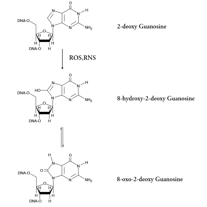 - 8 hydroxyguanine, 8-OH-dG, 8-OHdG, 80G, 8OHG, DNA Damage